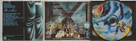 Limited edition features vinyl replica packaging of original gatefold double LP artwork. The enhanced CD comes with CD picture innersleeve, booklet, special tour booklet replica, promotional Rock in Rio advertisement and special Eddie coin sticker. Collecting and mailing six Eddie' stickers with $ 6.66 you got a special CD edition of the legendary 7" replica of "The SoundHouse Tapes".