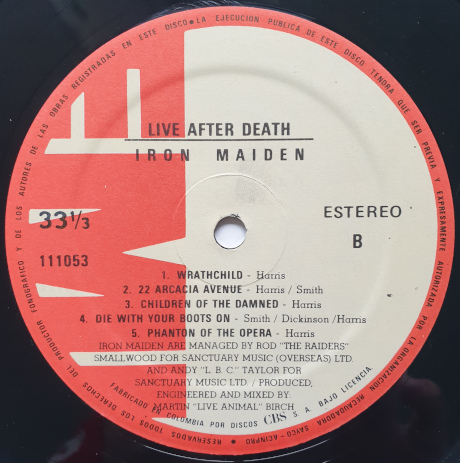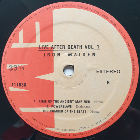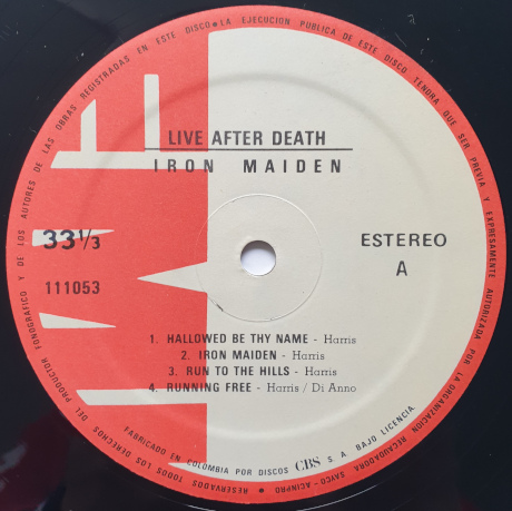 Live After Death - Colombia (CO) - (Volume One) Label 1.