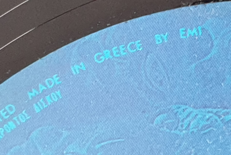 Early 90s press with printer "Ορφανός Σκαλτσάς" appears on the back sleeve. Release with one insert printed on both sides with lyrics. Label reord 2 side A is mutch purple and the other one. In picture "5" Can you see that it says Made in Greece. The text is partially overwritten. The previous versions say Made and printed in Greece.